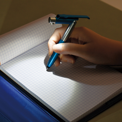 ライト付き・タッチペン付きの多機能タイプのボールペン。